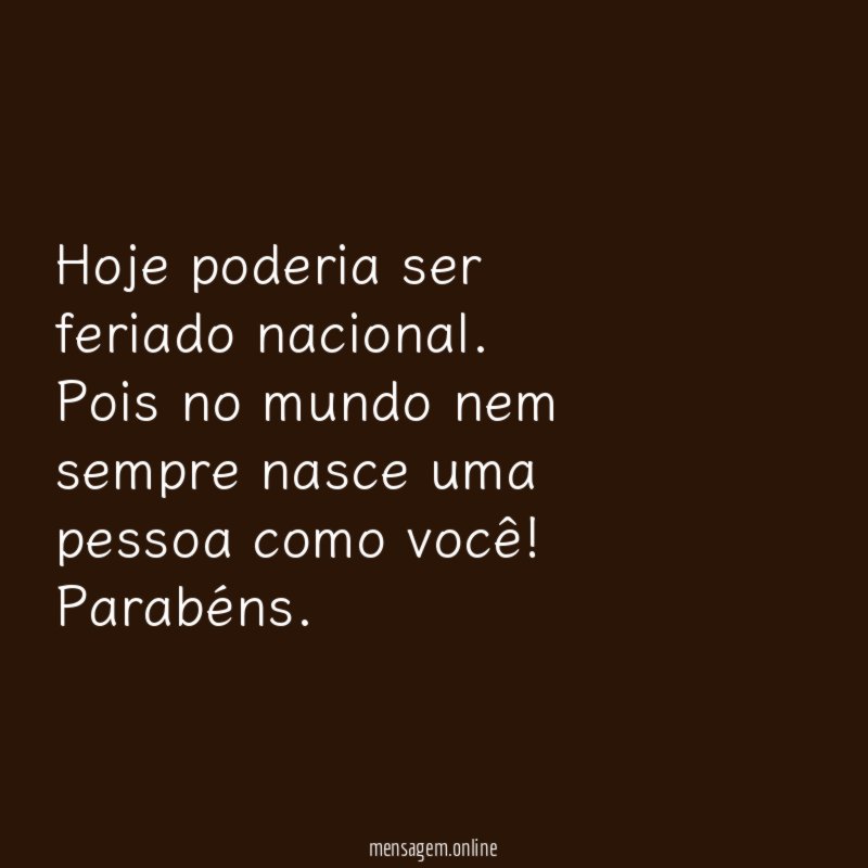 Hoje poderia ser feriado nacional. Pois no mundo nem sempre nasce uma pessoa como você! Parabéns.
