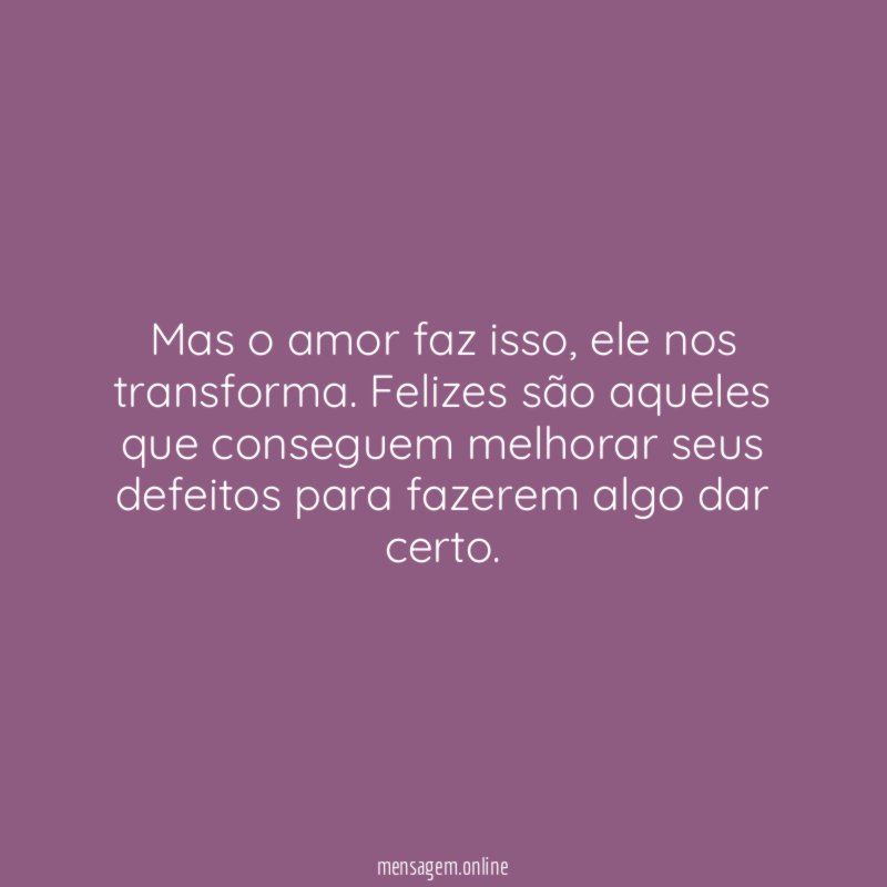 Mas o amor faz isso, ele nos transforma. Felizes são aqueles que conseguem melhorar seus defeitos para fazerem algo dar certo.