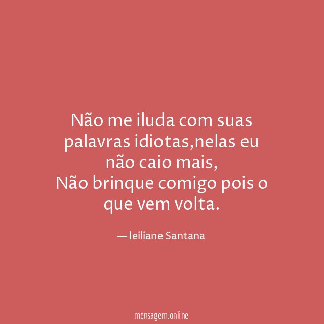 Não me venha com frases feitas, com cartas marcadas…tenho sempre um trunfo na manga. Não se iluda, as aparências podem enganar, mas a verdadeira face é quem ao final, conta!!!