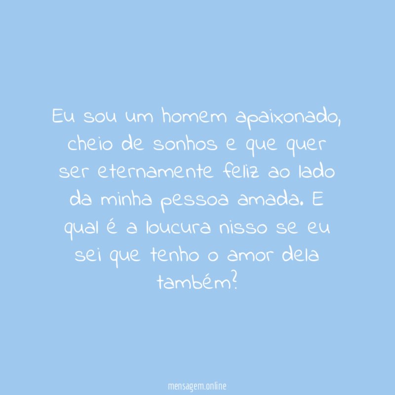Eu sou um homem apaixonado, cheio de sonhos e que quer ser eternamente feliz ao lado da minha pessoa amada. E qual é a loucura nisso se eu sei que tenho o amor dela também?