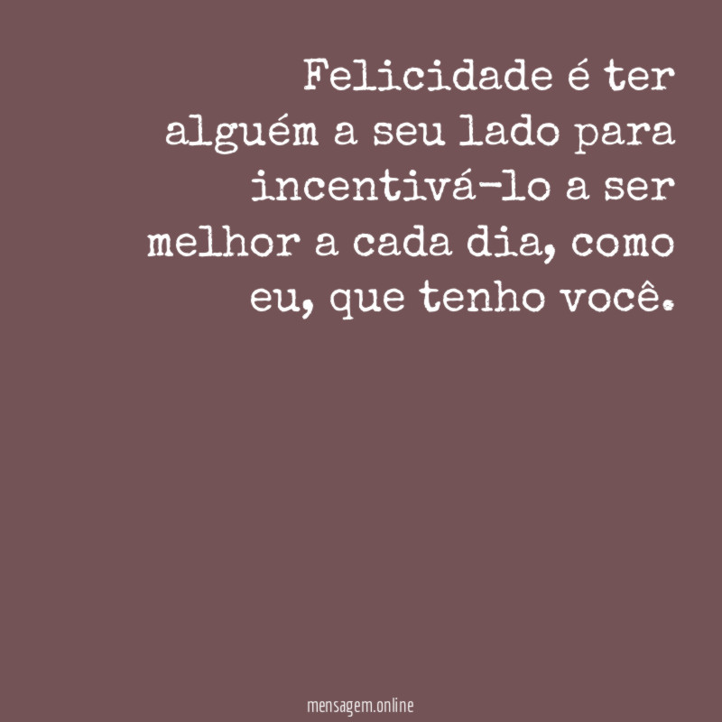 Felicidade é ter alguém a seu lado para incentivá-lo a ser melhor a cada dia, como eu, que tenho você.
