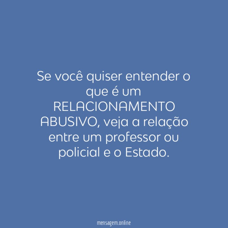 Se você quiser entender o que é um RELACIONAMENTO ABUSIVO, veja a relação entre um professor ou policial e o Estado.