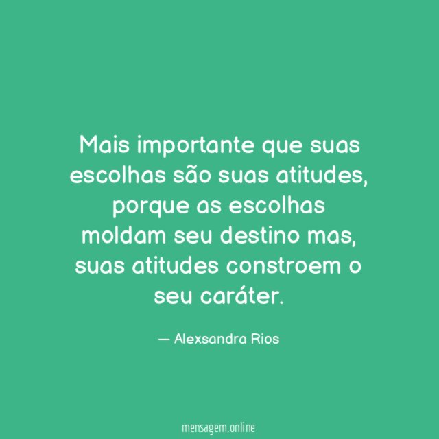Mais importante que suas escolhas são suas atitudes, porque as escolhas moldam seu destino mas, suas atitudes constroem o seu caráter.