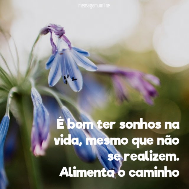 Não deixe de sonhar, pois isso seria como deixar de viver, sonhos servem para alimentar nossos desejos, impulsionam as nossas vidas, não deixe de almejar seus objetivos, vá sempre em frente, busque, a…