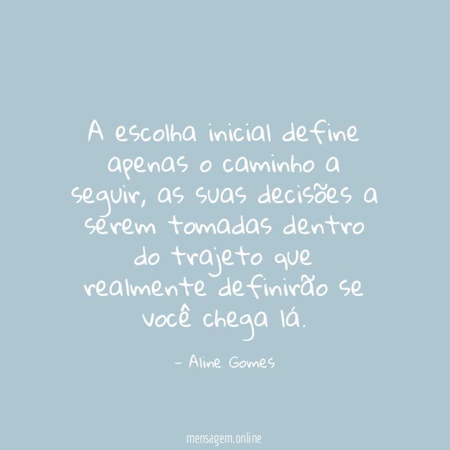 A escolha inicial define apenas o caminho a seguir, as suas decisões a serem tomadas dentro do trajeto que realmente definirão se você chega lá.