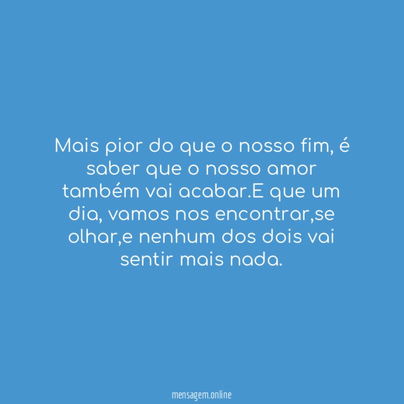 mais pior do que o nosso fim, é saber que o nosso amor também vai acabar.E que um dia, vamos nos encontrar, se olhar, e nenhum dos dois vai sentir mais nada.