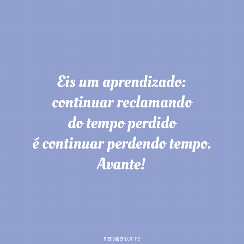 Eis um aprendizado: continuar reclamando do tempo perdido é continuar perdendo tempo.