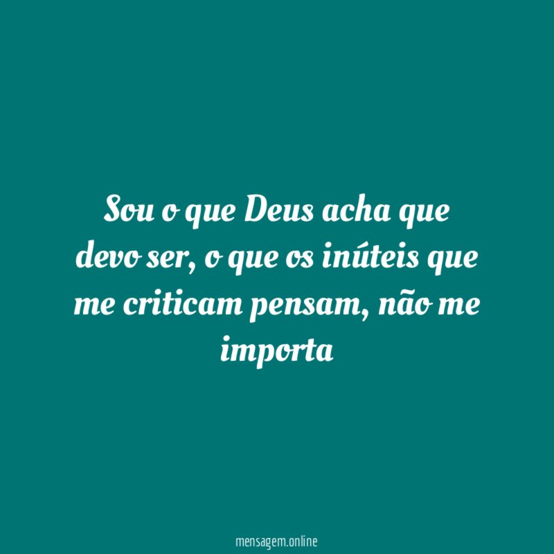 Sou o que Deus acha que devo ser, o que os inúteis que me criticam pensam, não me importa