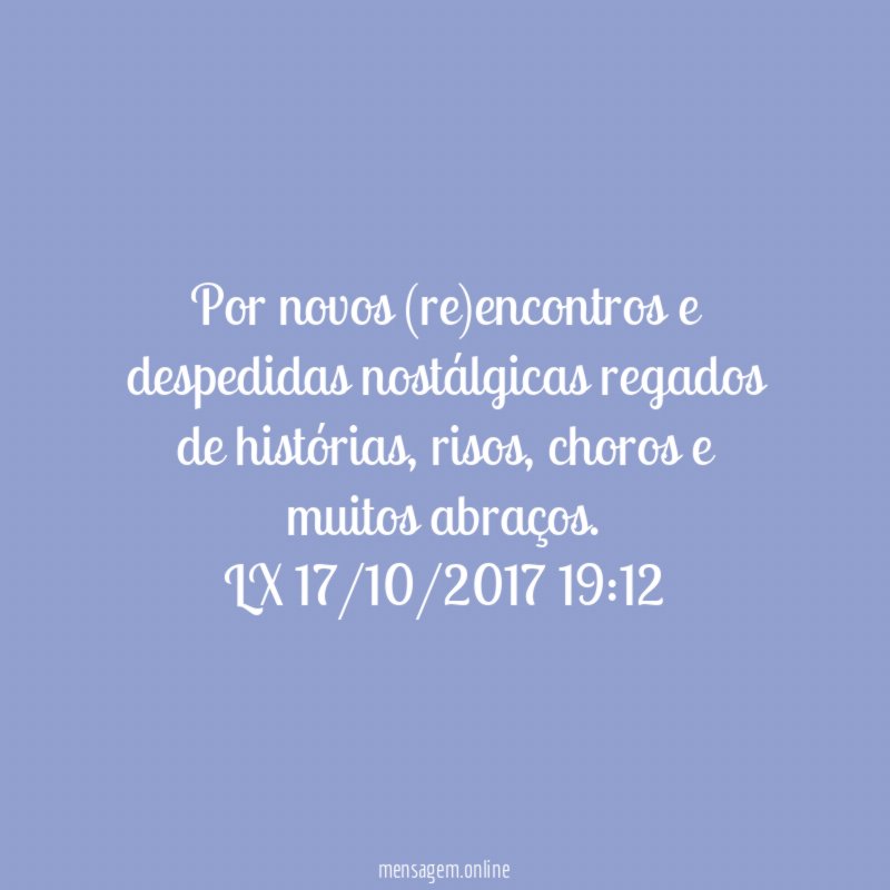Sempre me dei bem com despedidas, contando as vezes que mudei de colégio. Meus amigos nunca duraram mais que três anos, digo em presença material mesmo, porque alguns levo para sempre. Hoje eu entendo…