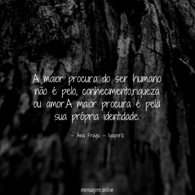 A maior procura do ser humano não é pelo, conhecimento, riqueza ou amor.A maior procura é pela sua própria identidade.