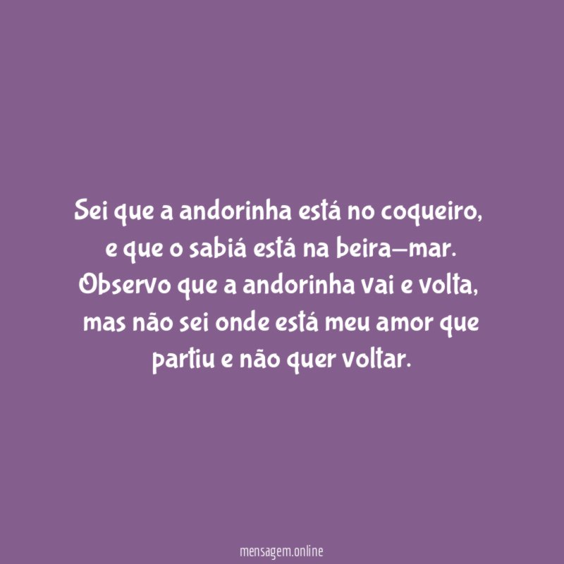 mas não sei onde está meu amor que partiu e não quer voltar.