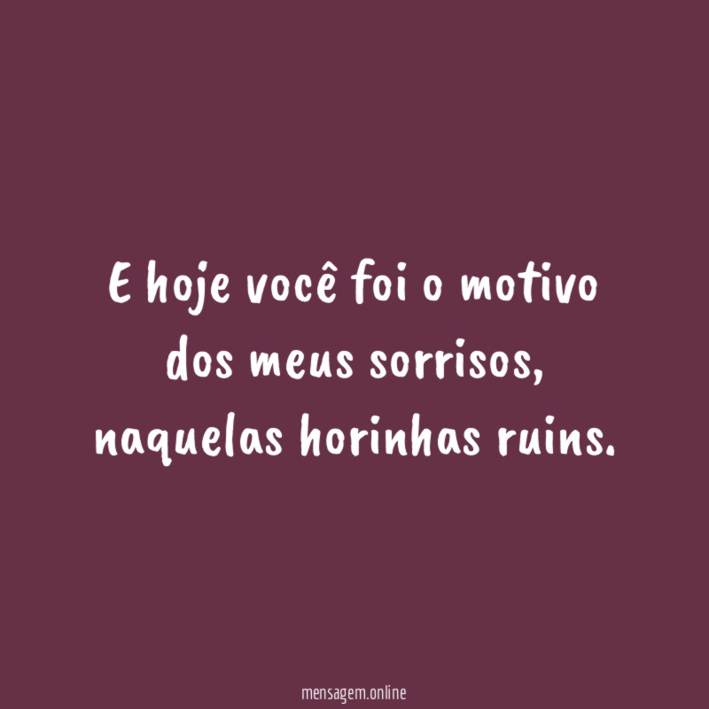 E hoje você foi o motivo dos meus sorrisos, naquelas horinhas ruins.