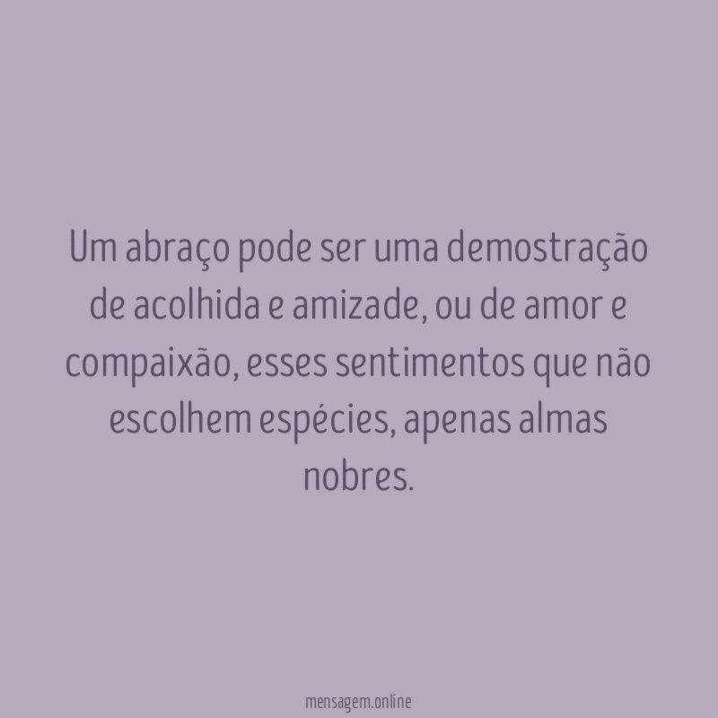 Um abraço pode ser uma demostração de acolhida e amizade, ou de amor e compaixão, esses sentimentos que não escolhem espécies, apenas almas nobres.