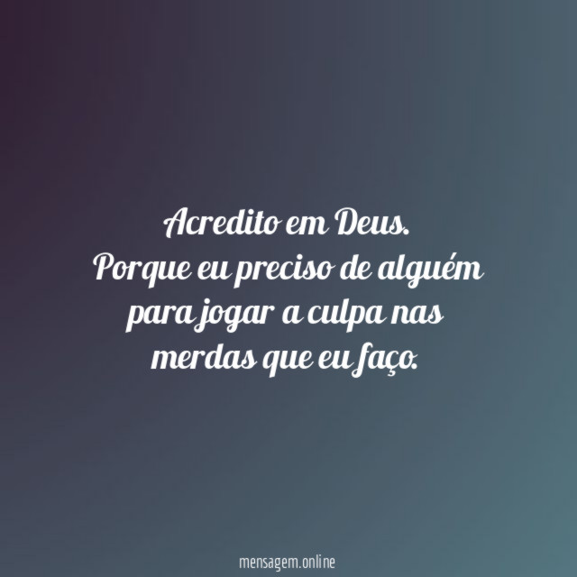 Acredito em Deus. Porque eu preciso de alguém para jogar a culpa nas merdas que eu faço.