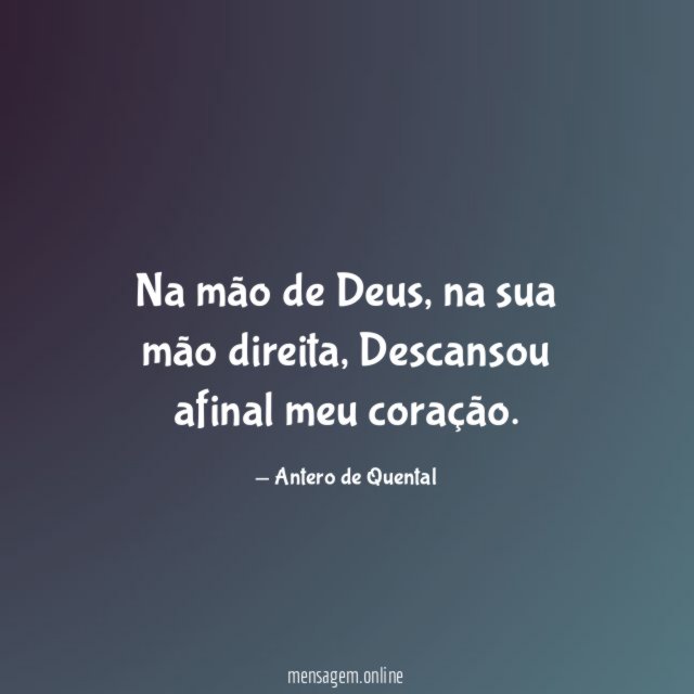Na Mão de Deus Na mão de Deus, na sua mão direita, Descansou afinal meu coração. Do palácio encantado da Ilusão Desci a passo e passo a escada estreita.