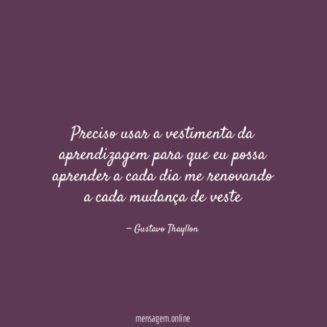 Não queime nenhuma etapa de aprendizagem, não tenha pressa, o que deixamos de aprender hoje fará falta em nossa hora mais importante.