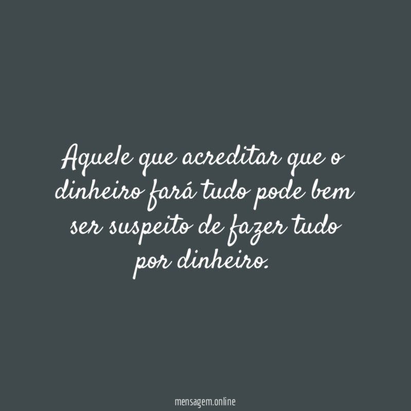 Aquele que acreditar que o dinheiro fará tudo pode bem ser suspeito de fazer tudo por dinheiro.