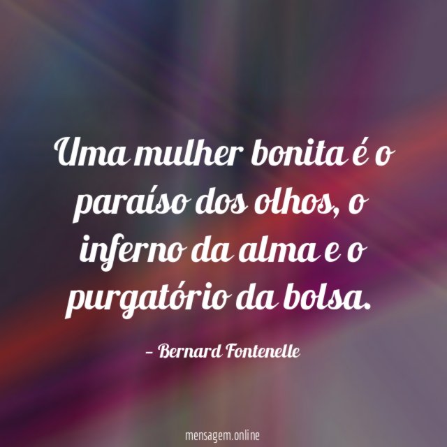 Uma mulher bonita é o paraíso dos olhos, o inferno da alma e o purgatório da bolsa.