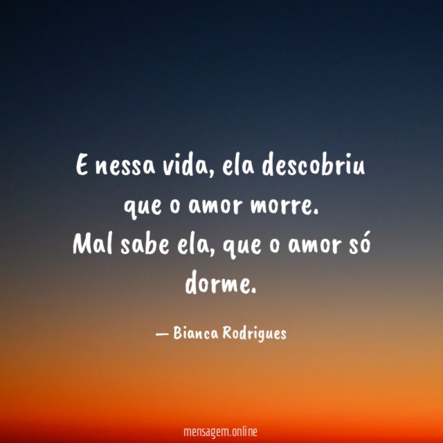 E nessa vida, ela descobriu que o amor morre. Mal sabe ela, que o amor só dorme.