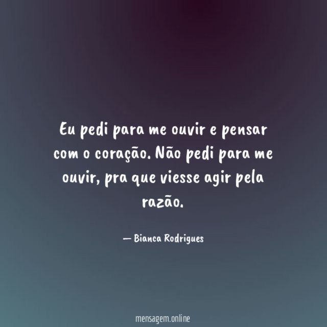 Eu pedi para me ouvir e pensar com o coração. Não pedi para me ouvir, pra que viesse agir pela razão.