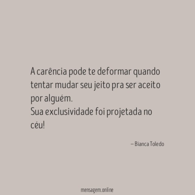 A carência pode te deformar quando tentar mudar seu jeito pra ser aceito por alguém.