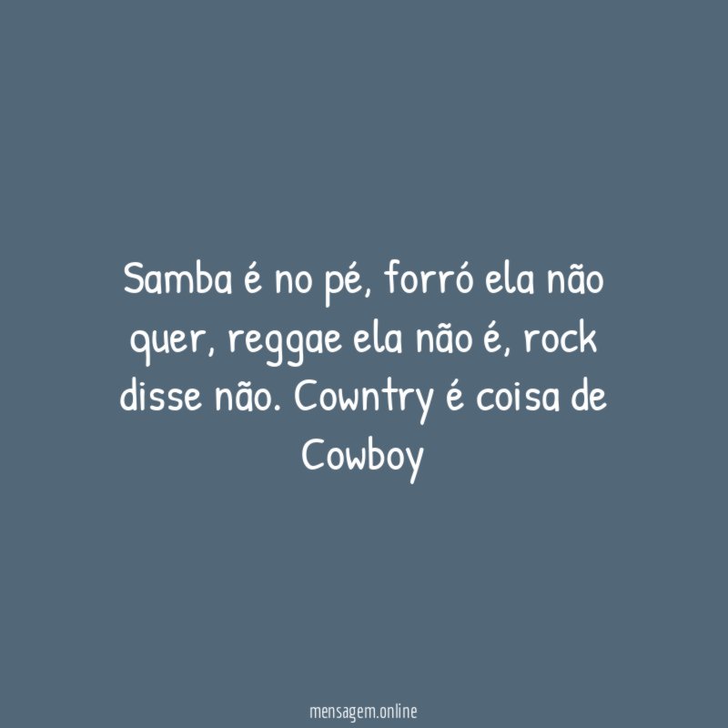 Samba é no pé, forró ela não quer, reggae ela não é, rock disse não. Cowntry é coisa de Cowboy