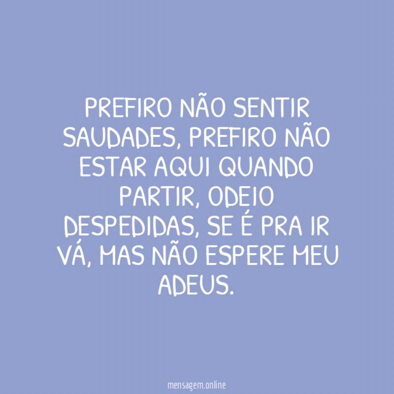 Prefiro não sentir saudades, prefiro não estar aqui quando partir, odeio despedidas, se é pra ir vá, mas não espere meu adeus.