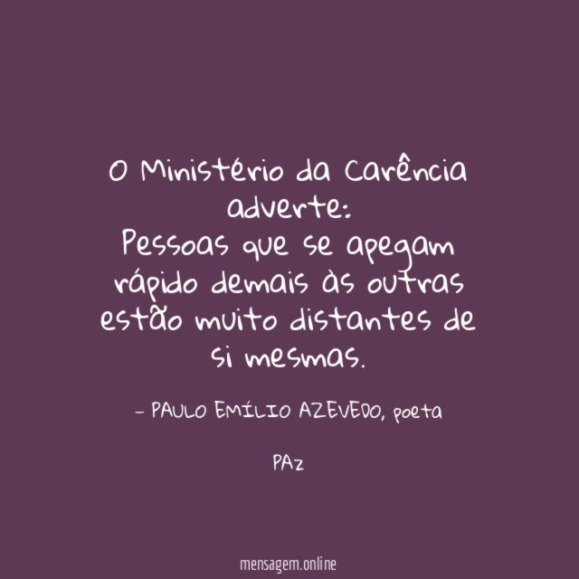 "A carência pode maltratar algumas pessoas, mais se elas continuarem a esperar atenção de certas pessoas, vão continuar a sofrer. Pense nisso"