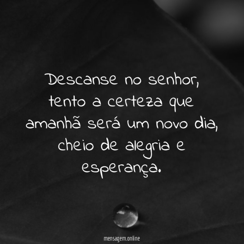 Descanse no senhor, tento a certeza que amanhã será um novo dia, cheio de alegria e esperança.