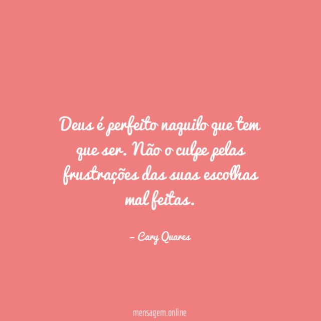 Deus é perfeito naquilo que tem que ser. Não o culpe pelas frustrações das suas escolhas mal feitas.