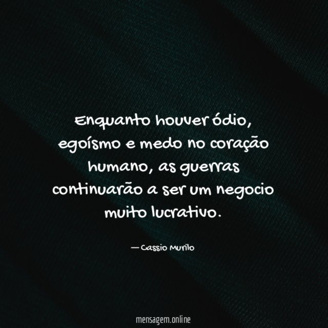 Enquanto houver ódio, egoísmo e medo no coração humano, as guerras continuarão a ser um negocio muito lucrativo.