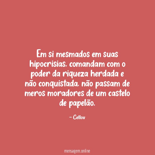 Em si mesmados em suas hipocrisias, comandam com o poder da riqueza herdada e não conquistada, não passam de meros moradores de um castelo de papelão.