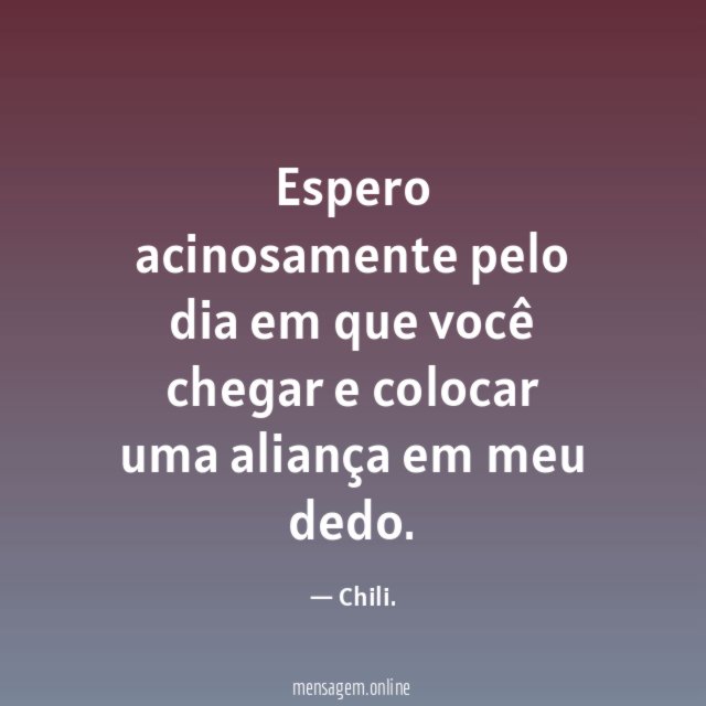 Espero acinosamente pelo dia em que você chegar e colocar uma aliança em meu dedo.