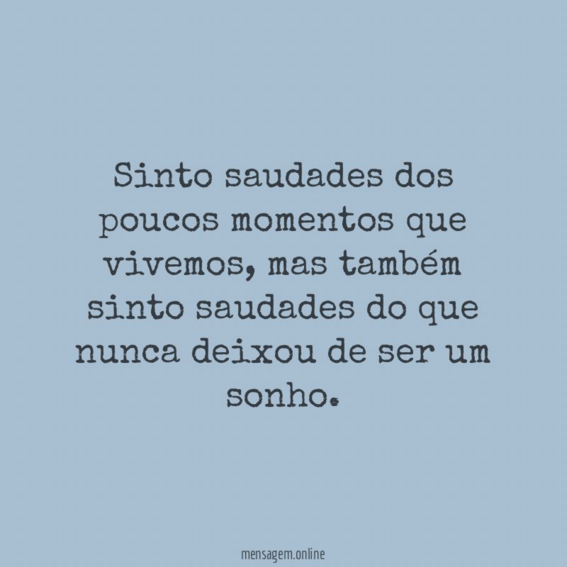Sinto saudades dos poucos momentos que vivemos, mas também sinto saudades do que nunca deixou de ser um sonho.