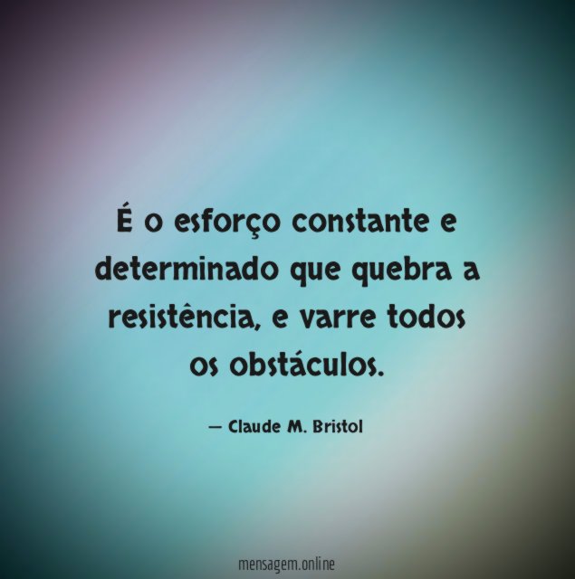 É o esforço constante e determinado que quebra a resistência, e varre todos os obstáculos.