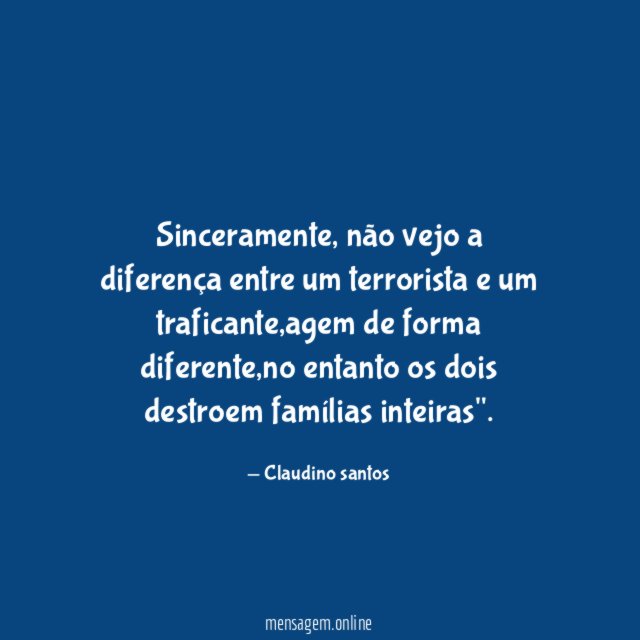 "Sinceramente, não vejo a diferença entre um terrorista e um traficante, agem de forma diferente, no entanto os dois destroem famílias inteiras".