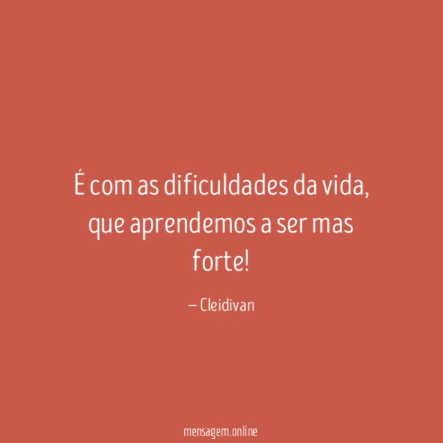 É com as dificuldades da vida, que aprendemos a ser mas forte!