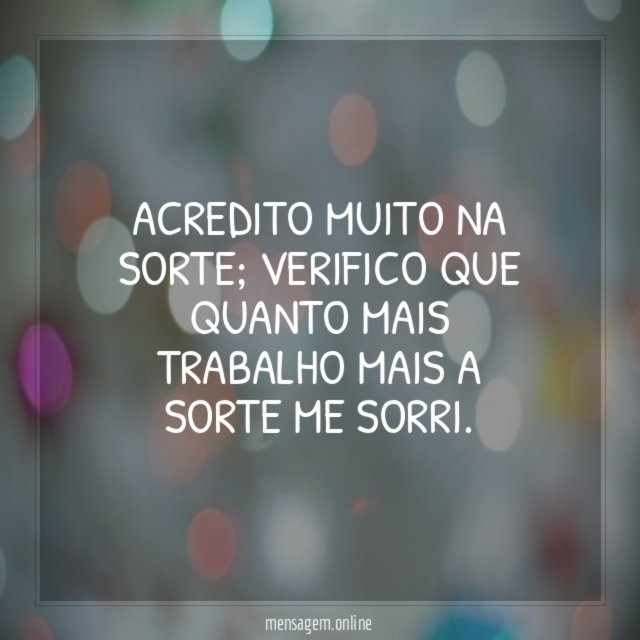 Acredito muito na sorte; verifico que quanto mais trabalho mais a sorte me sorri.