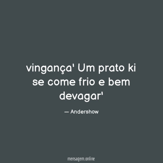 Muitos dizem que a vingança é um prato que se come frio, para mim a vingança se quer é um prato ela por sua vez é um atestado de morte da alma, que vive presa em busca de algo que nunca trará paz ou a…