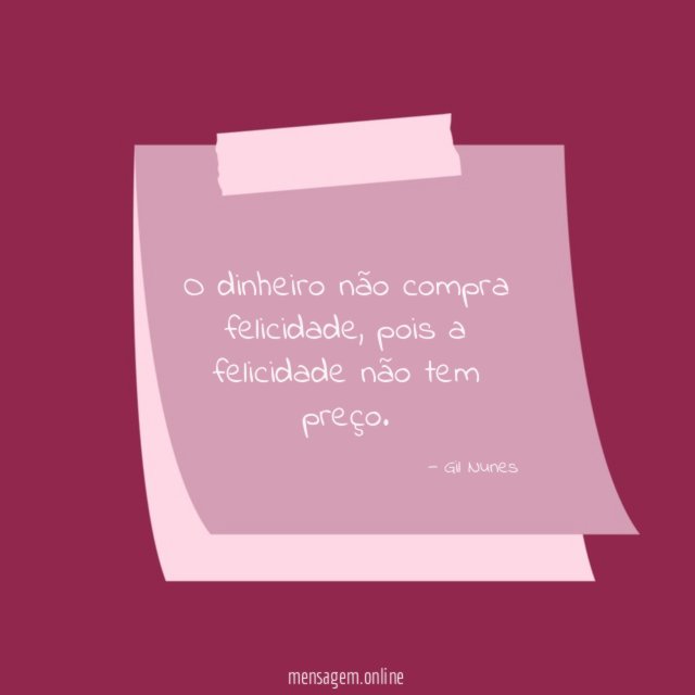 O dinheiro não compra felicidade, pois a felicidade não tem preço.