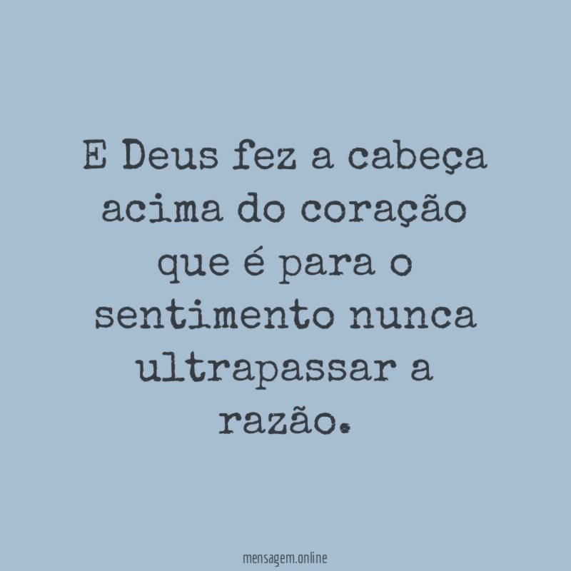 "… é que Deus fez a cabeça em cima do coração, pra que o sentimento, NUNCA ultrapasse a razão…"