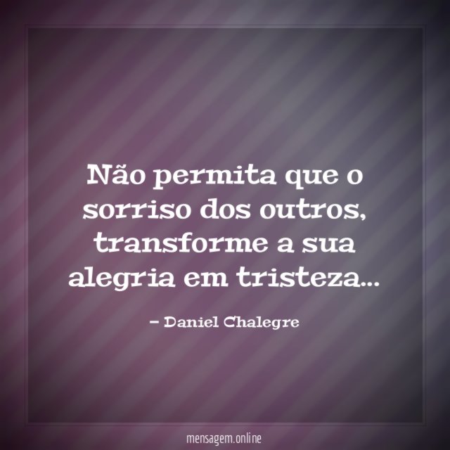 Não permita que o sorriso dos outros, transforme a sua alegria em tristeza…
