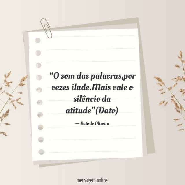 “O som das palavras, por vezes ilude.Mais vale o silêncio da atitude”(Dato)