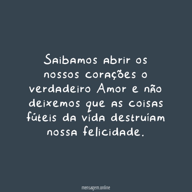Saibamos abrir os nossos corações o verdadeiro Amor e não deixemos que as coisas fúteis da vida destruíam nossa felicidade.