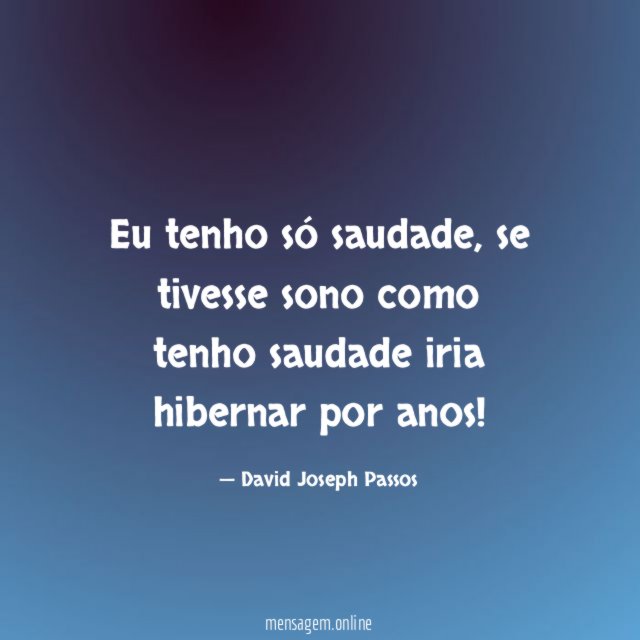 Eu tenho só saudade, se tivesse sono como tenho saudade iria hibernar por anos!