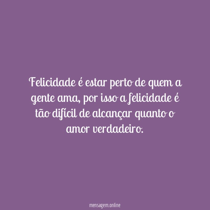Felicidade é estar perto de quem a gente ama, por isso a felicidade é tão difícil de alcançar quanto o amor verdadeiro.