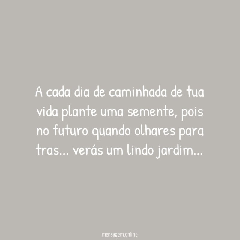 A cada dia de caminhada de tua vida plante uma semente, pois no futuro quando olhares para tras… verás um lindo jardim…
