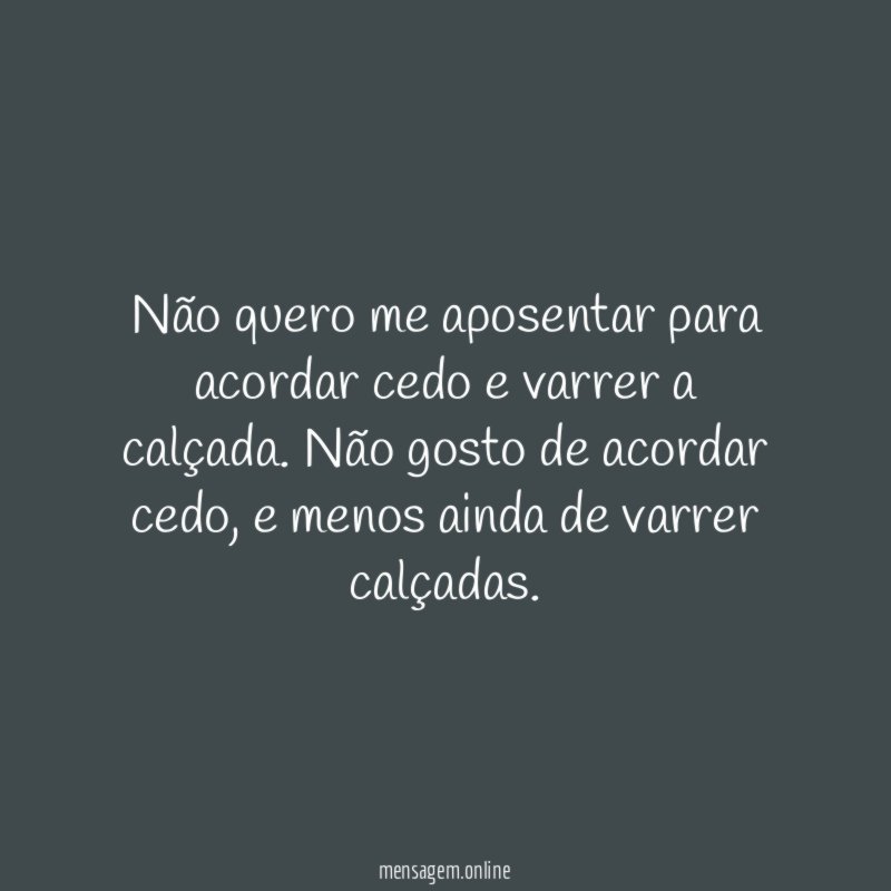“Não quero me aposentar para acordar cedo e varrer a calçada. Não gosto de acordar cedo, e menos ainda de varrer calçadas.”
