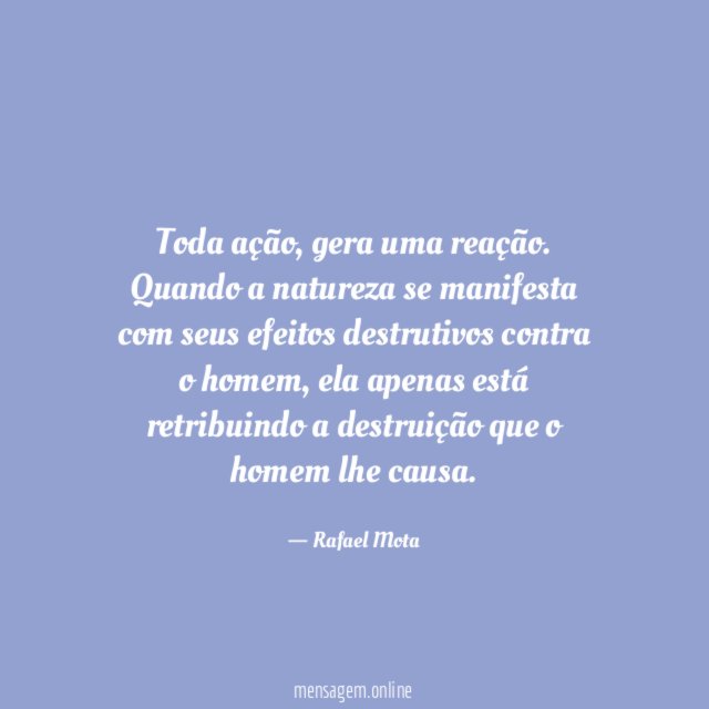 O homem destrói a natureza, ai quando acontece catástrofes a culpa é de São Pedro!