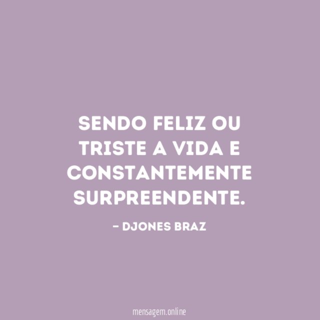Sendo feliz ou triste a vida e constantemente surpreendente